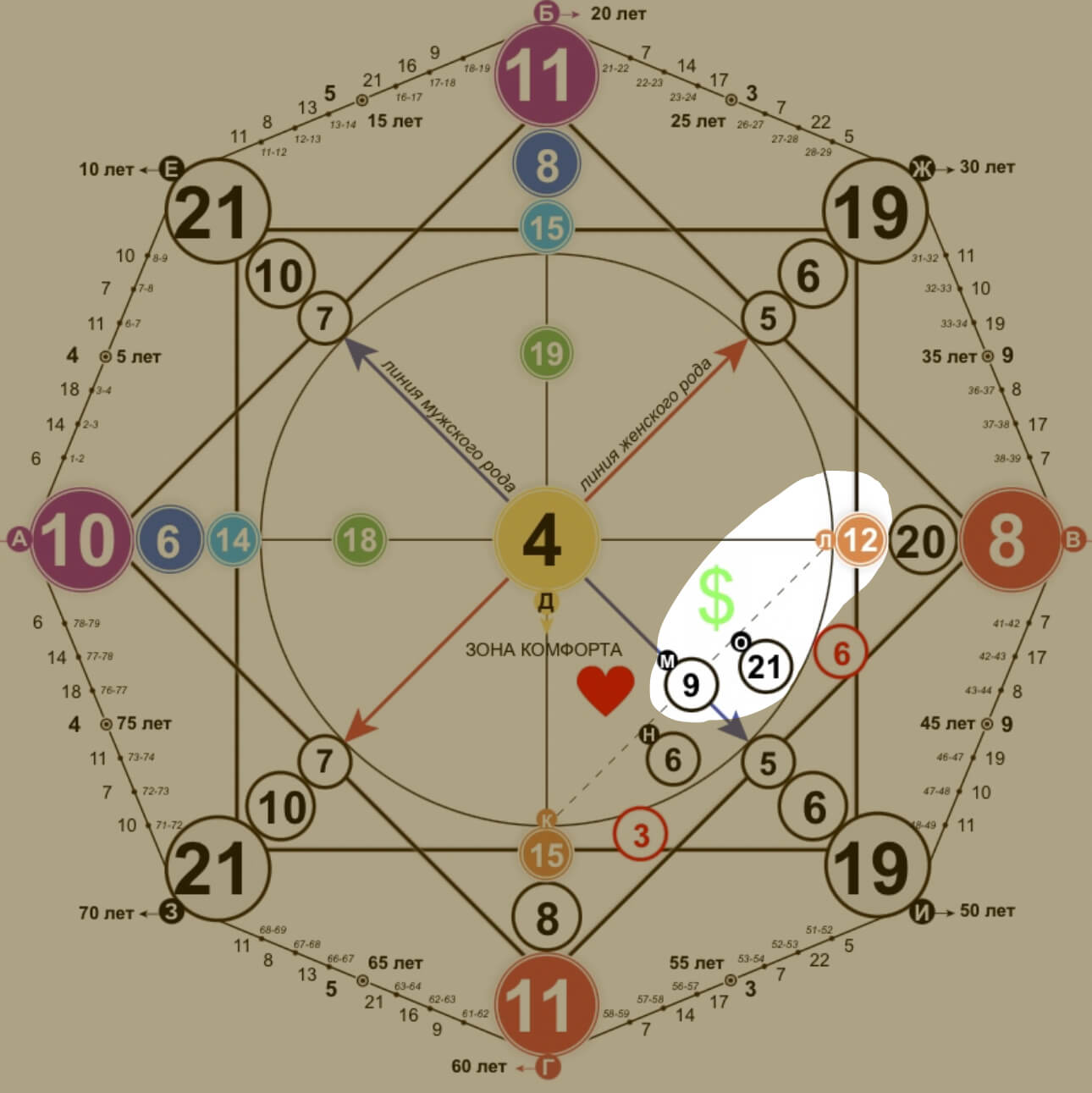 Финансовый канал – расположен на линии благополучия. Показывает через что к человеку придут большие деньги, что блокирует и на что надо обязательно тратить хотя бы часть денег.
