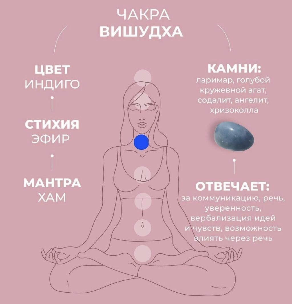 Йога, медитации и мантры (направленные на раскрытие пятой чакры). Включить синие оттенки (одежда, пища) в свою жизнь, использовать соответствующие камни (в медитациях или просто носить с собой). Начать говорить о своих желаниях и потребностях, научиться говорить "нет", высказывать своё недовольство и претензии.